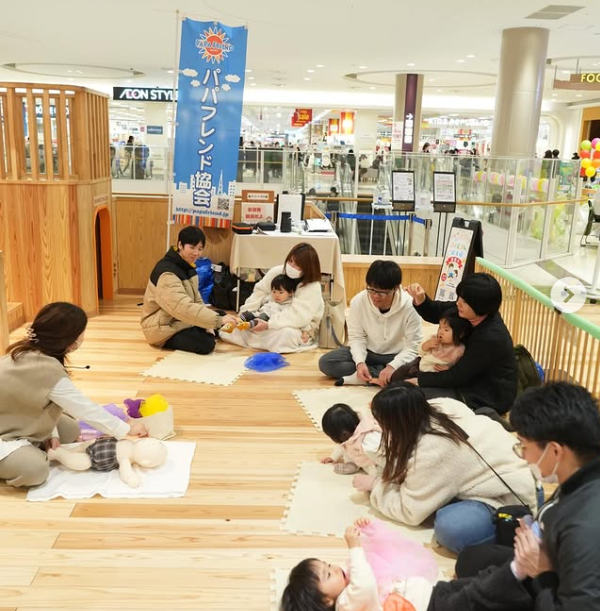 2026/2/8(日) 広島市 イオンモール広島祇園にて、パパも参加しやすい親子講座「ファミフレひろば」ベビーマッサージを開催しました