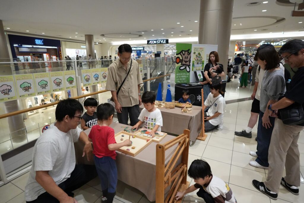 展示していたモーリーぬりえをきっかけに、保護者の方がリーフレットや冊子に目を向けてくださる場面もあり、木育の取り組みを知っていただく機会にもなりました。。