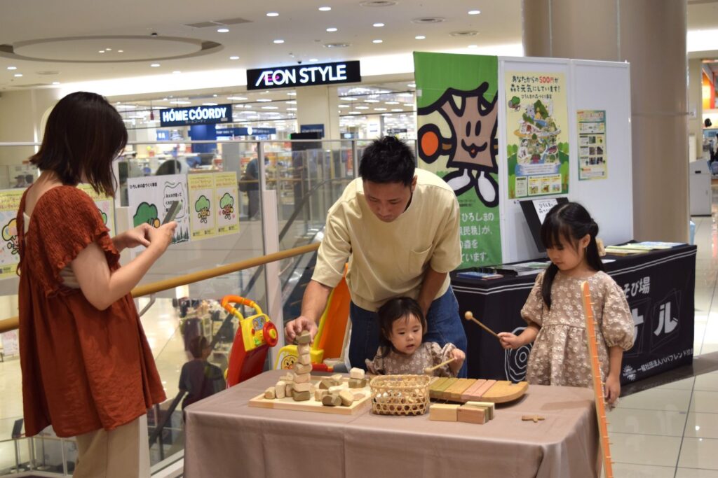 2025/9/8(月)~9/13(日)広島市 イオンモール広島祇園にてモーリーのぬりえ展示と木の創造あそび場「キ二ナル」を開催しました