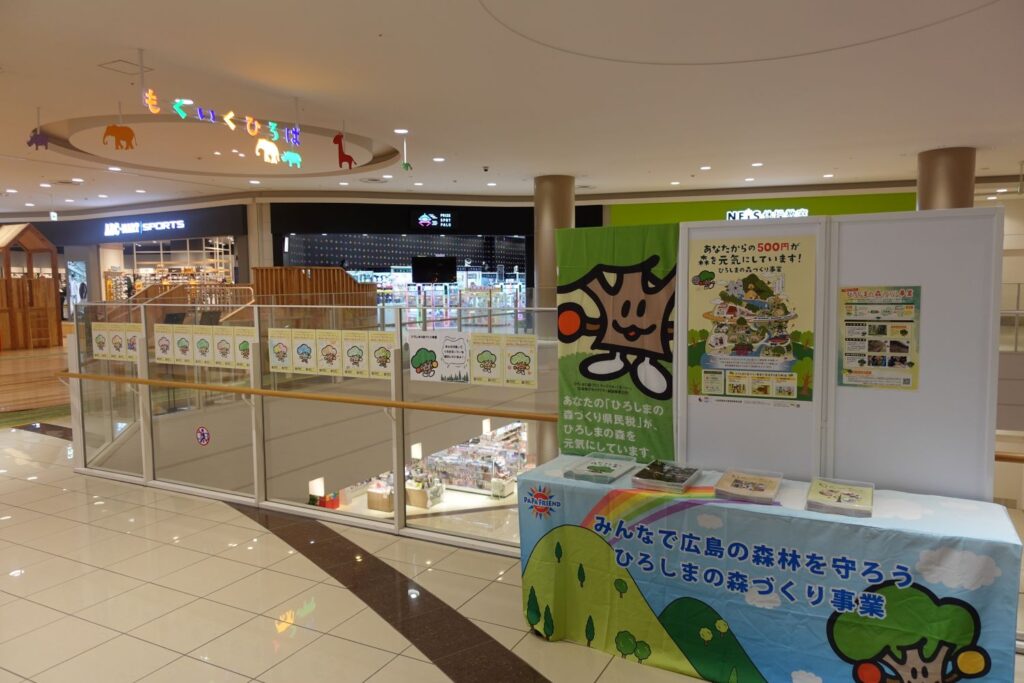 会場では、作品展示とあわせて「ひろしまの森づくり事業」のポスター掲示や、事業内容の紹介も行いました。
